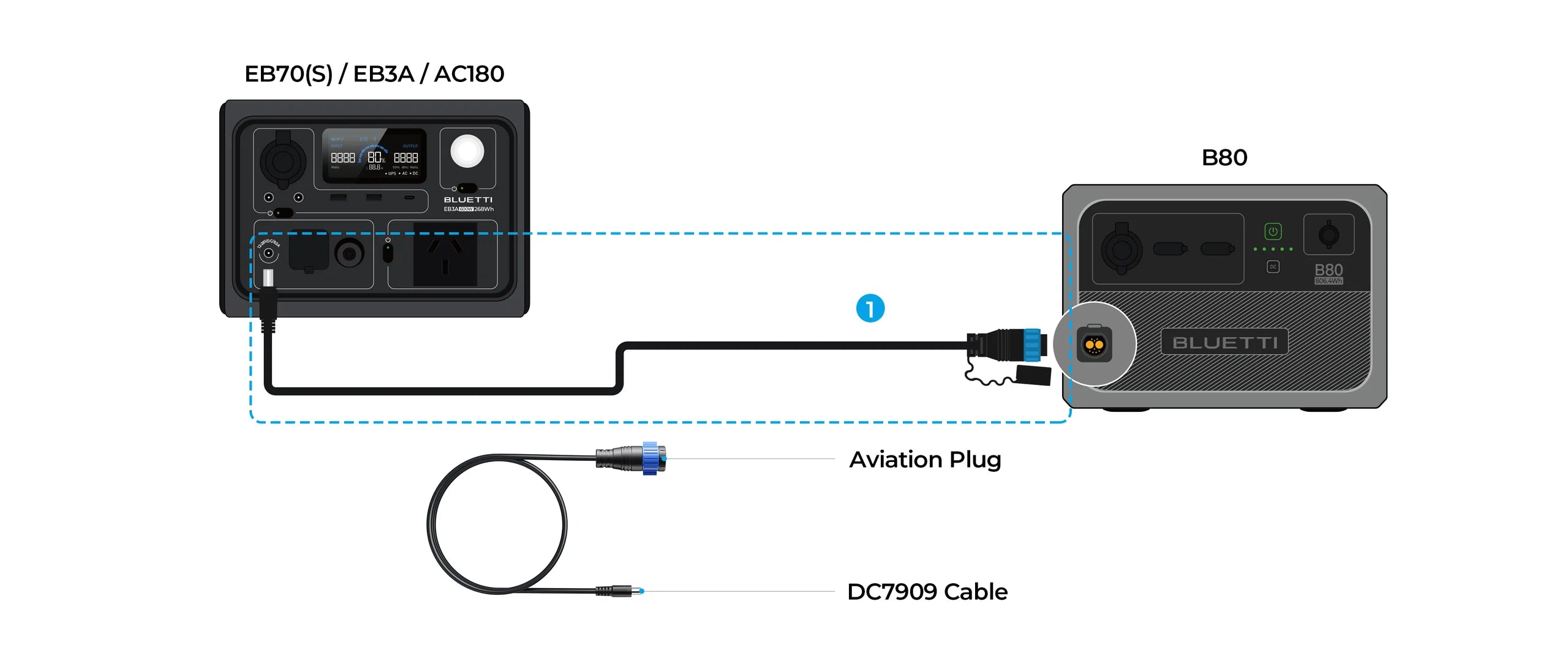 To increase your EB55/AC70/AC50B's run time, use this cable to connect it to the B80/P expansion battery. It adds an extra 806Wh capacity while the B80/P is in Power Bank mode, giving you extended power for your device.
